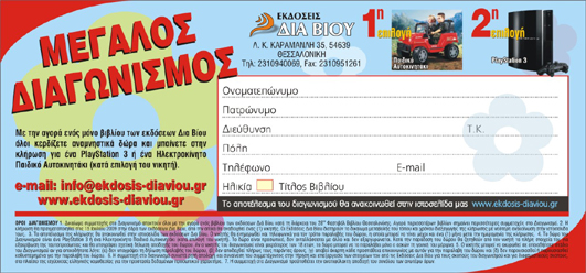 Τα αποτελέσματα του διαγωνισμού θα ανακοινωθούν στα Μέσα Μαζικής Ενημέρωσης και στην ιστοσελίδα μας www.ekdosis-diaviou.gr