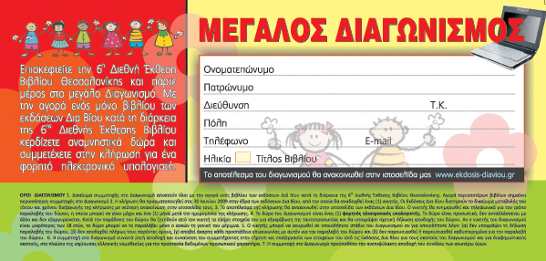 Τα αποτελέσματα του διαγωνισμού θα ανακοινωθούν στα Μέσα Μαζικής Ενημέρωσης και στην ιστοσελίδα μας www.ekdosis-diaviou.gr